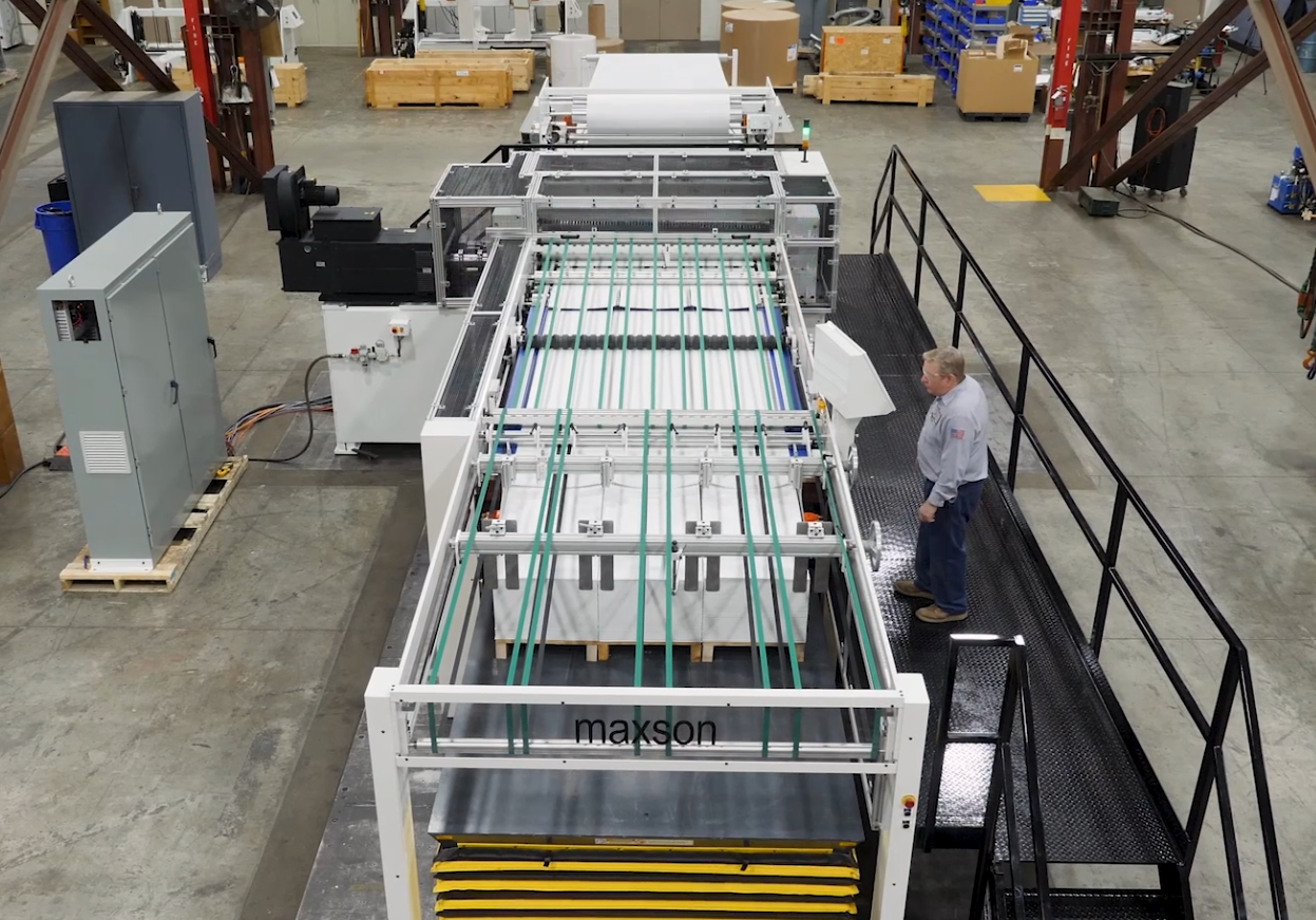 Paper and board mills requiring high production equipment can now be assured of a quality product with the Mill Duty Sheeter from MAXSON AUTOMATIC MACHINERY COMPANY (Westerly RI). Capable of operating at speeds of up to 1300 fpm (398 mpm), the Mill Duty Sheeter utilizes a unique dual knife rotary cutter design resulting in higher speeds on short cutoffs while providing maximum knife loading that delivers clean, dust free cut quality.